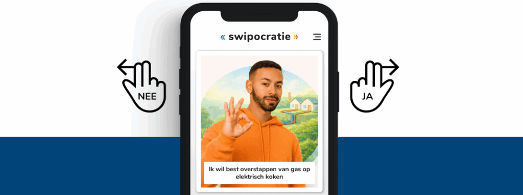 Samen met Swipocratie hebben we een korte, interactieve vragenlijst gemaakt. Gewoon swipen. Naar links. Of naar rechts. Zo wordt meepraten over het warmteprogramma simpel én leuk. Woon jij in Capelle? Denk dan 3 minuten mee.
